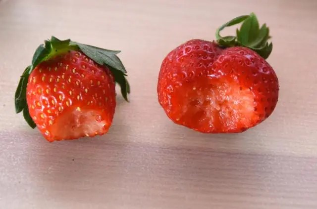 Size and shape: Tochigi strawberries are more diamond shaped while Fukuoka’s are more heart shaped, but about the same size.